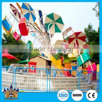 in favor of the adventure play equipment, appearance, color. the game machines is suitable for young people. After the machine restart, the wheel gradually turning , the seats were thrown back and forth diagonally rise, down, as if in the air around by parachute. Seat passengers can enjoy the taste of thrown in the air of freshness due to the changes of gravity. The product can be used in the amusement parks, outdoor playground, entertainment playground.