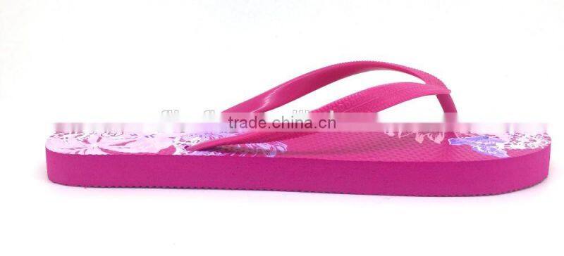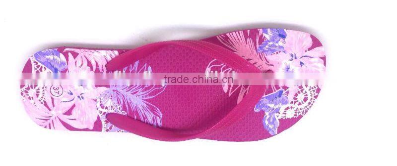 2016 Top Basic Children Footwear With Fuxia Flower Printing Rubber Flip Flop for Girl Beach Walk Shoes