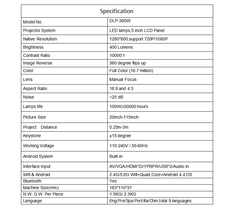 4. Whether the projector is built with WIFI?