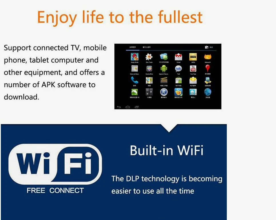 *The projector is manufactured using high - precision technology. With Android system, The smart projector is like a TV, Laptop and MP3 Player all - in - one.