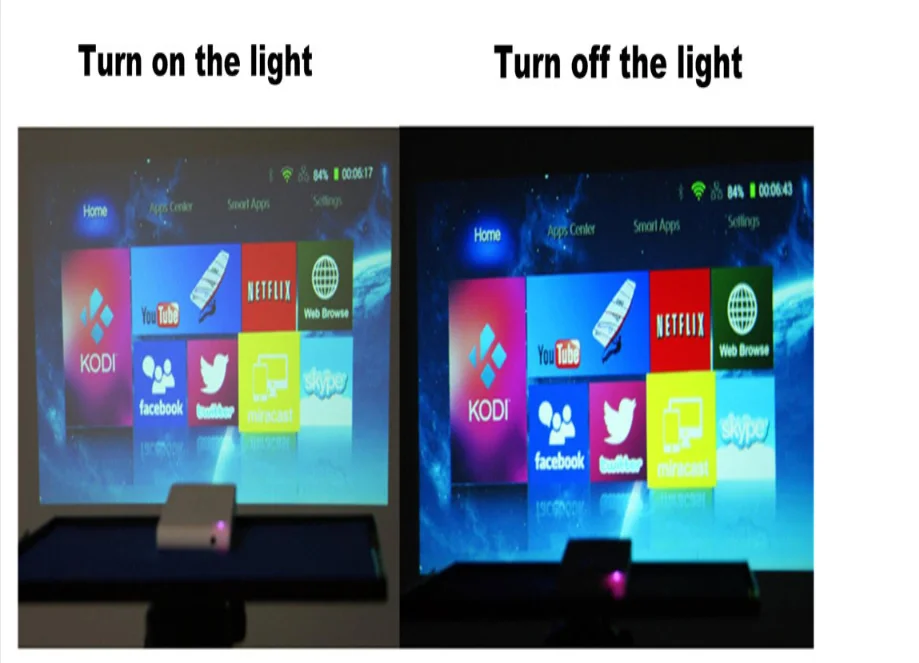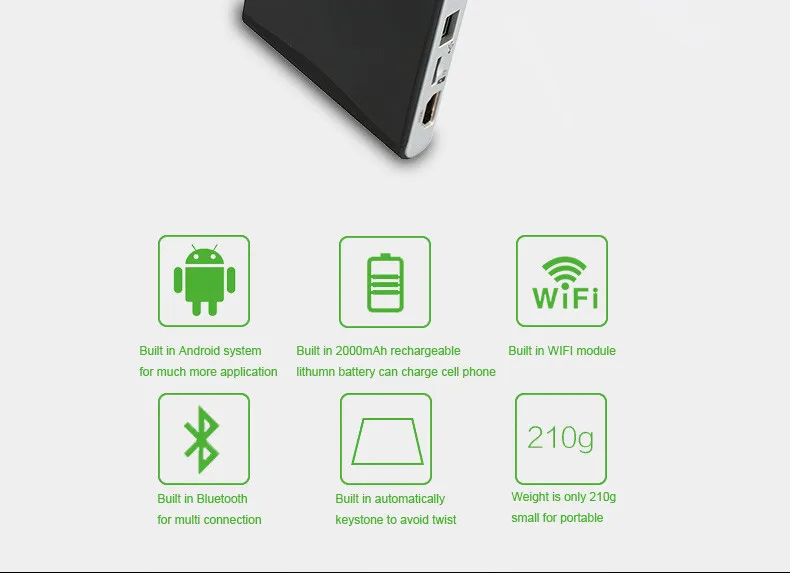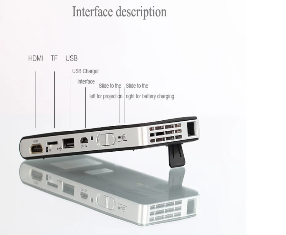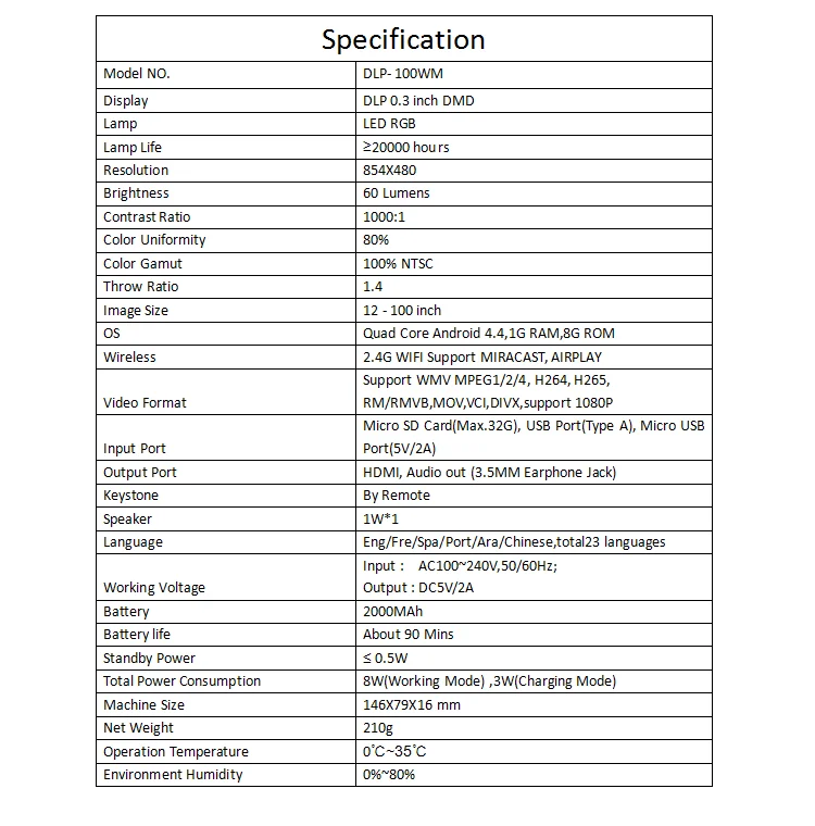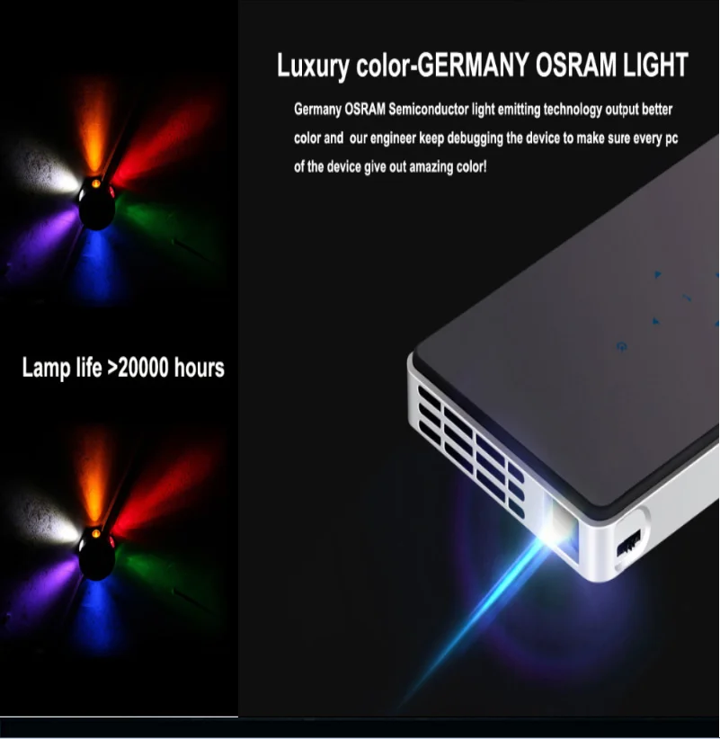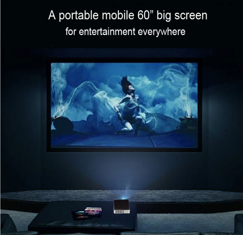 * Ultra Bright 60 Lumens, 854 * 480 Native Resolution, LED lamp life over 20,000hours.
