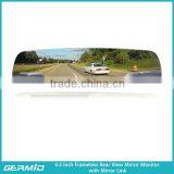 4.3 Inch Frameless Mirror Link Rear View Mirror Monitor With Two Video Inputs and Reversing Camera Display
