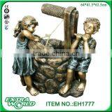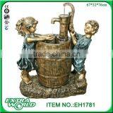 Resin Led Boy and Girl Play on Well Garden Water Fountain