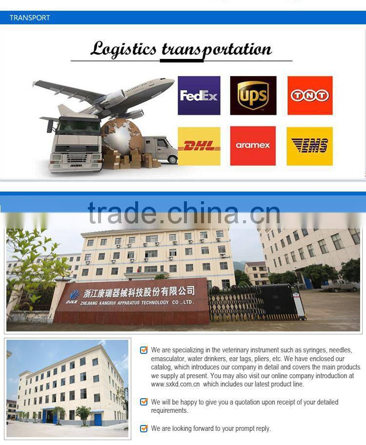 We are specializing in the veterinary instrument such as syringes, needles, emasculator, water drinkers, ear tags, pliers, etc. We have enclosed our catalog, which introduces our company in detail and covers the main products we supply at present. You may also visit our online company introduction at which includes our latest product line.