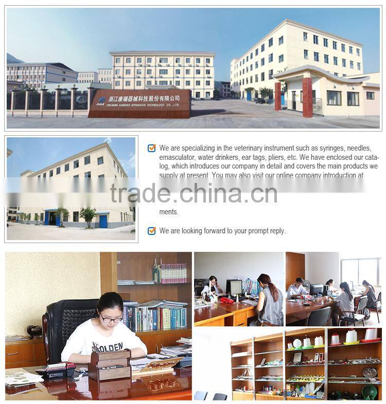 We are specializing in the veterinary instrument such as syringes, needles, emasculator, water drinkers, ear tags, pliers, etc. We have enclosed our catalog, which introduces our company in detail and covers the main products we supply at present. You may also visit our online company introduction at which includes our latest product line.