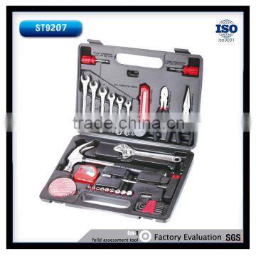 A: Our product line includes: Screwdriver, Hammer, Hex key, Bit, Bit holder, Socket, Pliers, Utility knife, Ratchet holder, Adjustable wrench, Booster cable, Tire pressure gauge, Test pen, Measure tape, Spirit level etc.and they are assembled to Household tool set, Emergency car repair tool set, Lady pink tool set, Tinplated box tool set, Tool bag set, Bit set, Socket set, Screwdriver set etc.