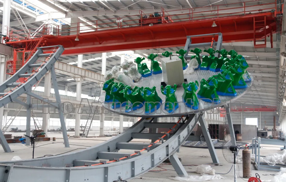 Flying Disco is the one of international popular rides, its have the cool device in appearance. When the turntable rotate and swing along the curved track, the LED lights will shining with the music to make the whole park into a big party. This product is very popular among the young people, which will attract lots of tourist as a new kind of roller coaster.