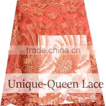 Peach Embroidery Tulle Fabric /2016 African Embroidered African Tulle Lace French Net Lace Fabric Nigerian Wedding African