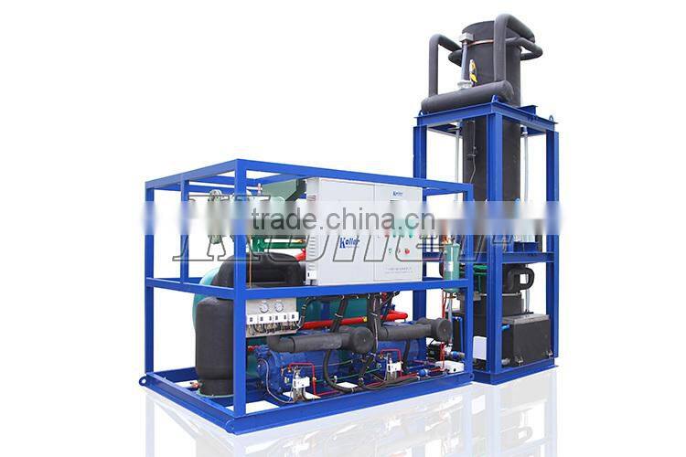 Koller TV series tube ice machine is a type ice machine, which produces cylinder shape ice with a hole in the middle; it adopts flooded evaporator model, which improves ice making efficiency and capacity. Meanwhile, compact structure design can save installation space. Ice thickness and hollow part size can be adjusted according to customer requirements. Under PLC program control system to work automatically, the machine has high capacity, low-power consumption and minimal maintenance.