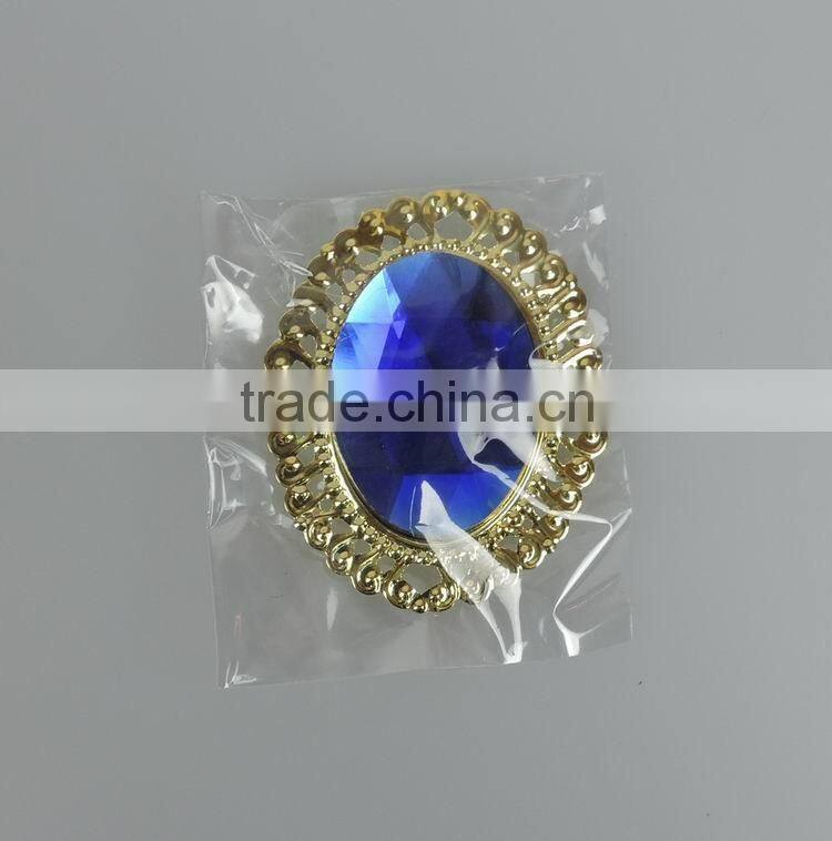 Wholesale Blue Ellipse Acrylic Diamond Brooch Badge for Daily or Party