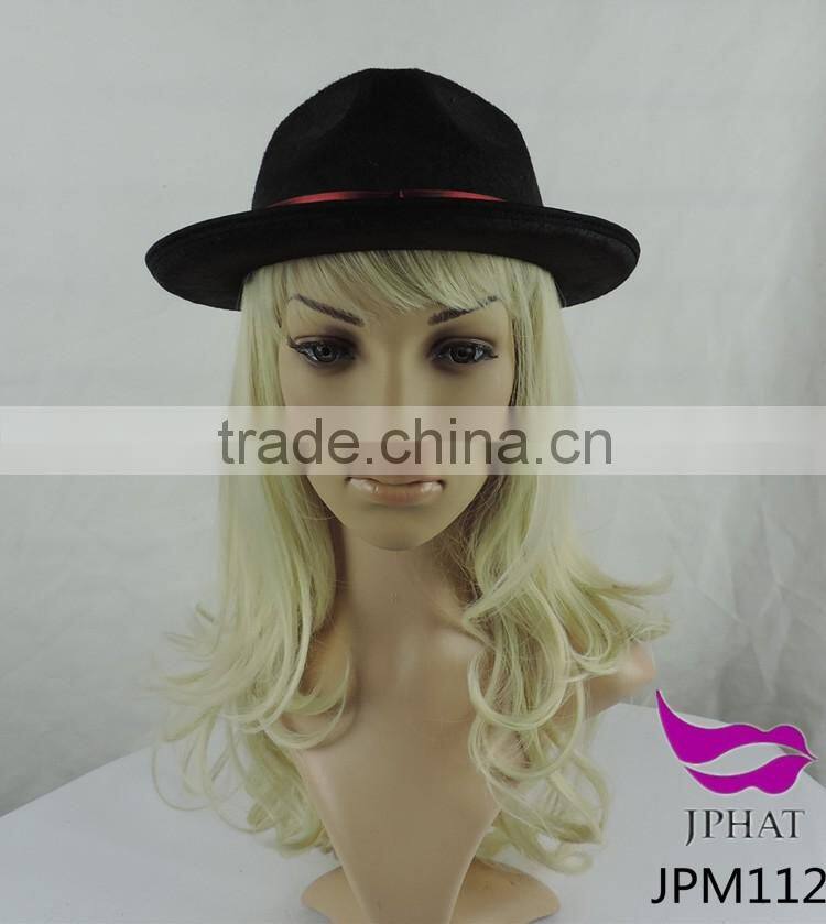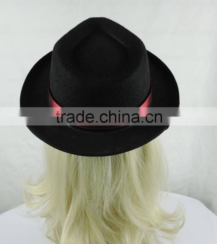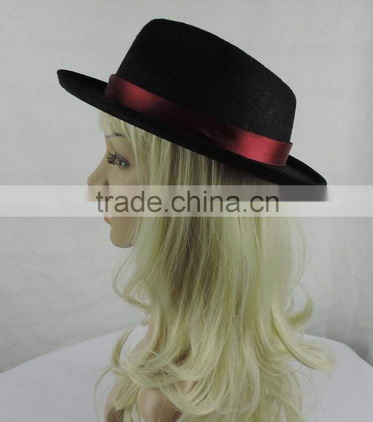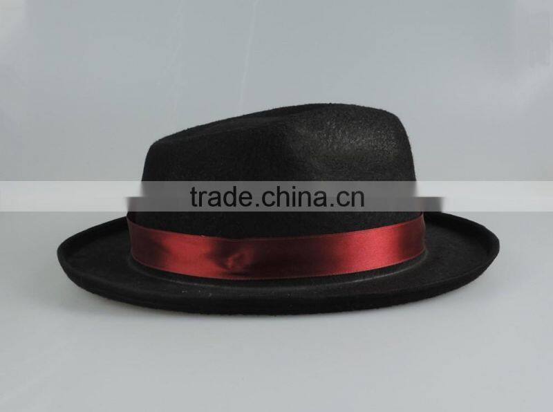 Black Cowboy Hat Setting Cap With Red Ribbon