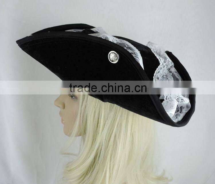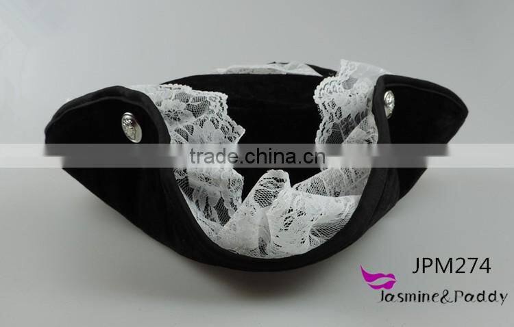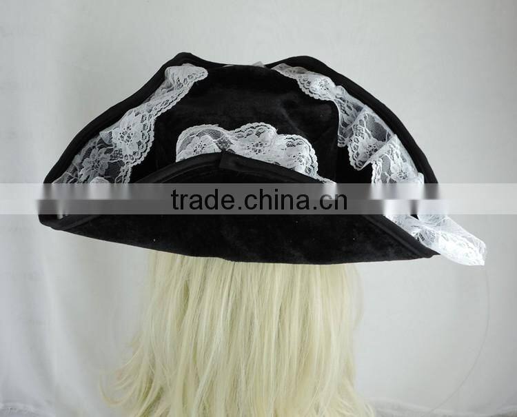 Pirate of the Caribbean Hat Pirate Hat White Lace Triangle Ostrich Hair