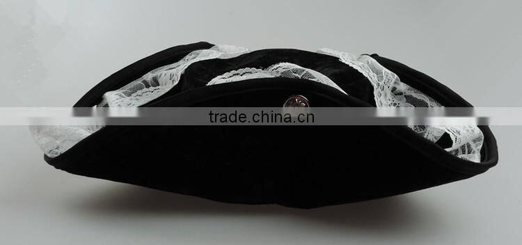 3: The hat is a very beautiful women's pirate hat, both sides have a red bow, hats a circle with gold lace and black lace decoration.
