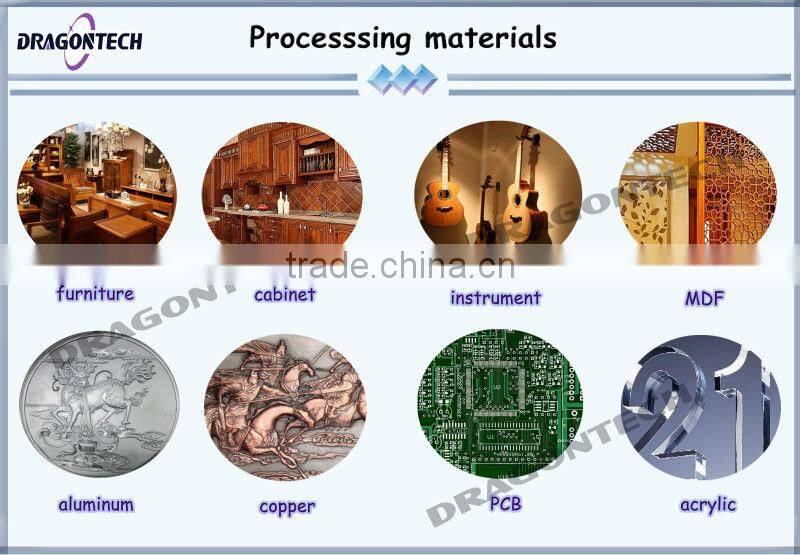 The Dragon Tech CNC Router is a professional machine, used for sign, graphic fabrication,2D/3D machining (wood, acrylic, plastics, PVC, MDF etc.), stone fixture, display manufacturing, solid surface machining, Non-ferrous sheet metalwork (aluminium, brass, copper and zinc).