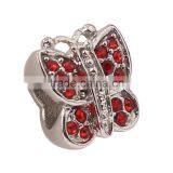 Stainless Steel Butterfly Red Crystal Charm for Wholesale