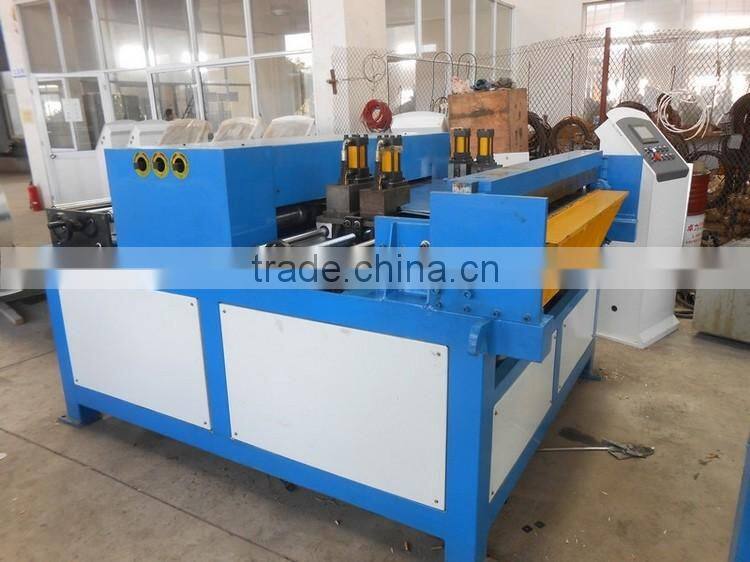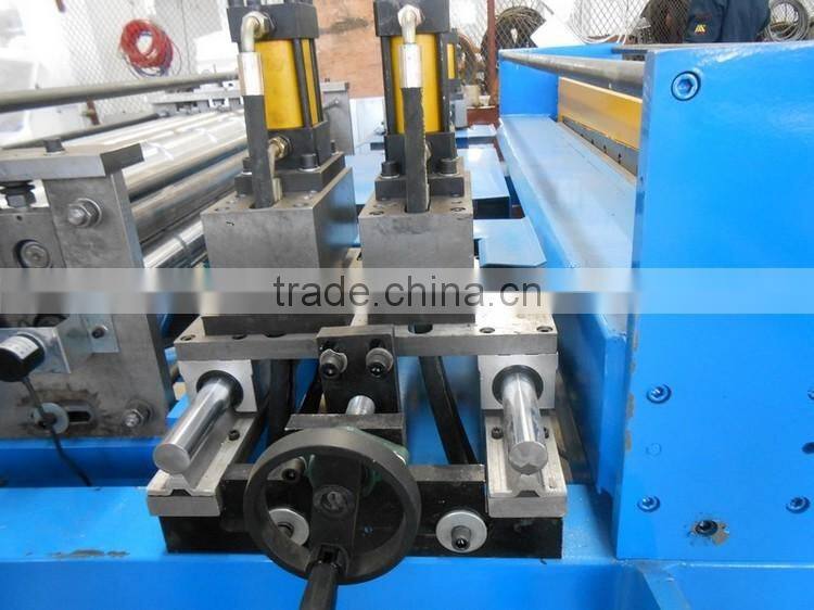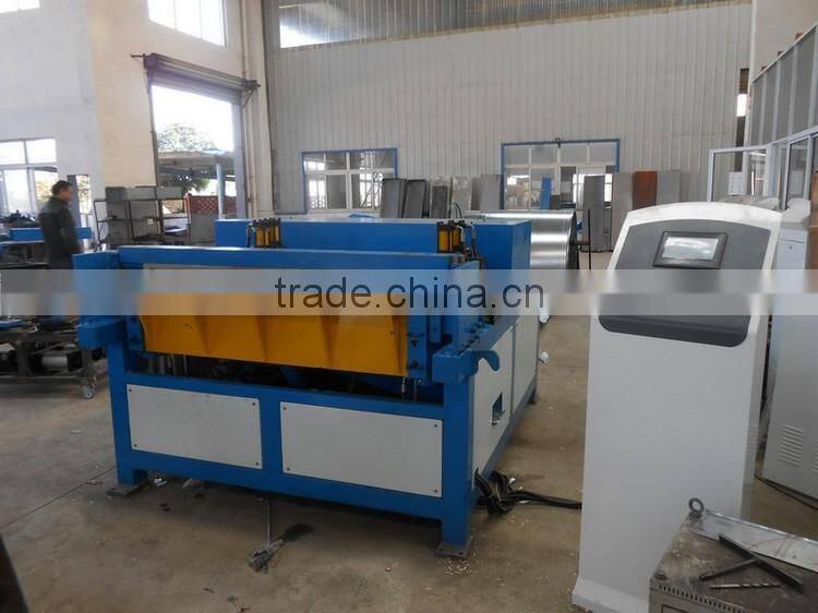 Auto air duct production line III is composed of feeding rack, leveling grooving machine, punch sharp and square opening oil press, hydraulic shearing machine, and hydraulic folding machine. The electric control part adopts computer control and the control system has closed loop feedback system so that the production precision and stability is improved obviously. The maximum working speed is 16m/min. The length tolerance is ±0.5mm and the diagonal tolerance is±0.8mm. The advantages of this production line are with high degree of automation, saving labors, high efficiency, saving material etc. And it’s very suitable for mass production of ventilation pipe.