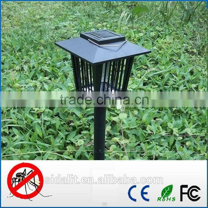 - Function switches: When the toggle switch to the middle, the white light LED lighting as solar function; opposite, 2 purple LEDS lighting as mosquito killer function. And meanwhile the electric voltage is above 600V on the grid. If there are mosquitoes or other flies classes, they will be electrocuted or adhering to the grid.
