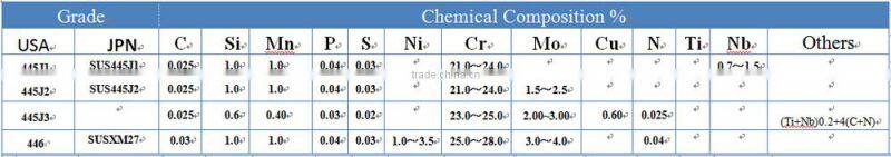 UNS #S44660 stainless steel is used in electric power plant condensers and BOP exchangers, various heat exchangers in chemical, petrochemical, and refining applications, desalinationheat exchangers and flue gas handling systems .