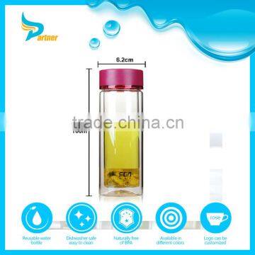 Hot Sale Double Wall Insulated Tea Glass Bottle Three Color Tea Cup Water Bottle
