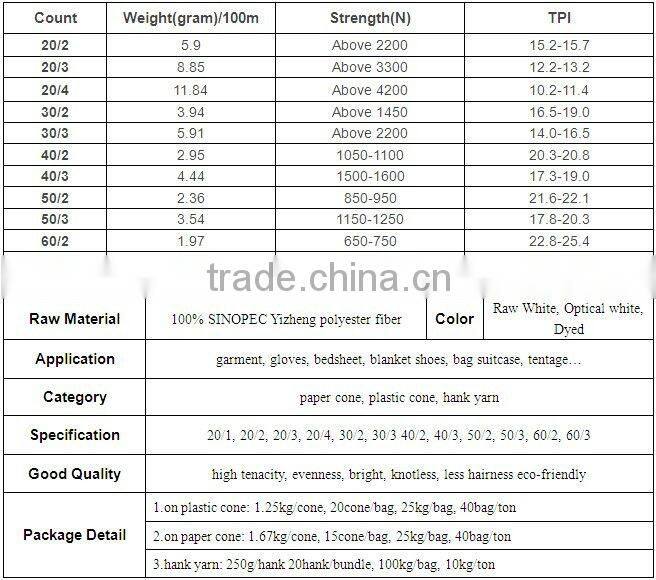 natural white spun polyester yarn factorymaterial:100% virgin polyester