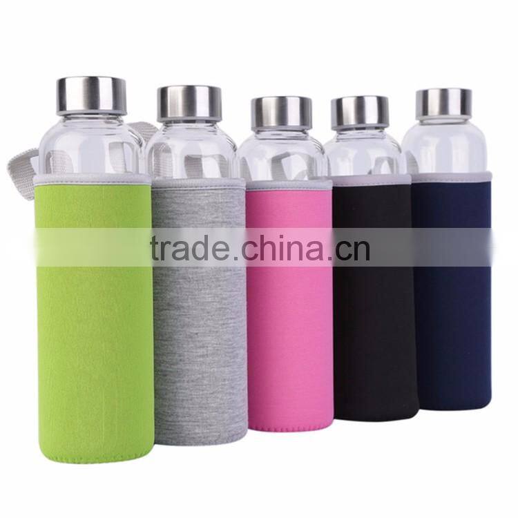 Cheap Logo Printed Green 500ml Glass Sport Water Bottle With Silicone Sleeve