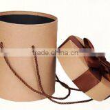 Tall Round Hat Paper Boxes for Flowers Packaging in Black With Perforated at the Size and Include a Matching Color
