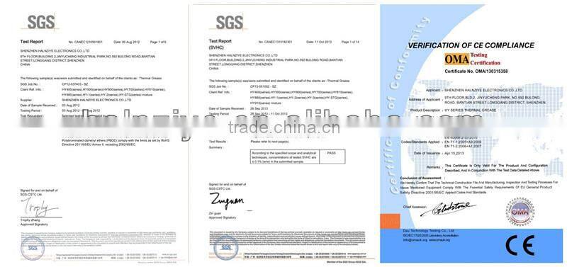 We, Shenzhen Halnziye Co., Ltd. are senior Thermal Grease manufacturer in China for years, our main products are heat sink compounds & heat sink plaster & heat sink flow and thermal pad, our products are widely used in CPU&VGA, LED, IC etc, with great operating property of our products (all products got SGS, Rosh certification), and our main markets are EU, north America, Northeast Asia, Southeast Asia etc, I believe you will find what you want to order with the best cost performance.