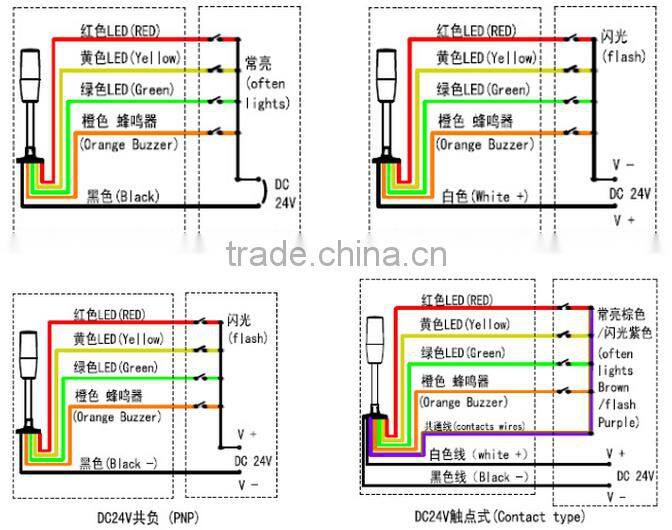Function: B. Continous light F. With buzzer no flash S. Red flash no buzzer C. Red flash with buzzer D. All flash E. All flash with buzzer |