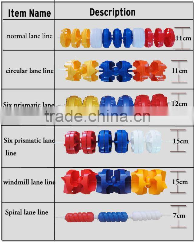 we have 6 kinds swimming pool lane ropes and Diameter 7cm,11cm,12cm and 15cm standard swimming pool Lane Ropes. Nylon or steel wire for your choice to be the conection line.