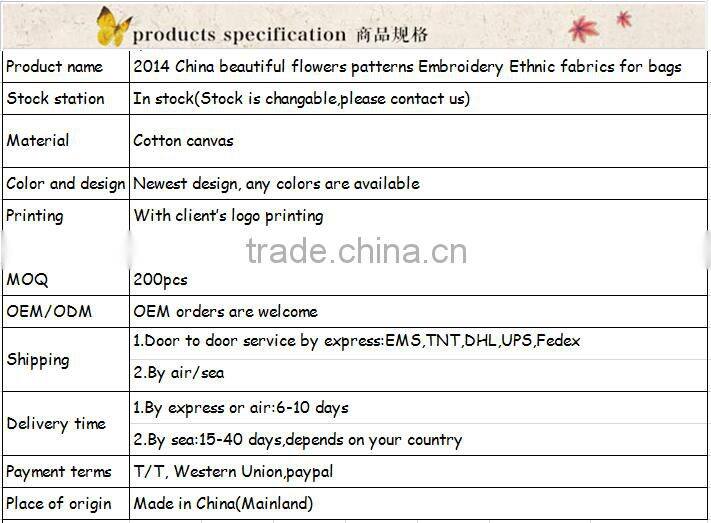 2014 China Beautiful Embroidery Ethnic Fabrics for Bags