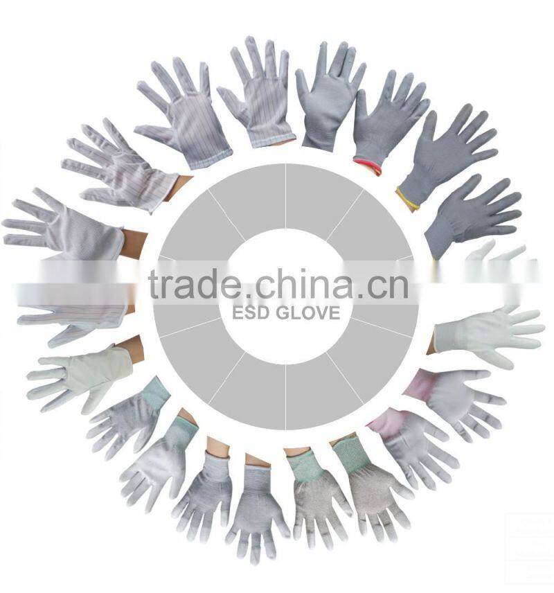 ES12105 antistatic nylon glove with carbon fiber,PU fingertip coating