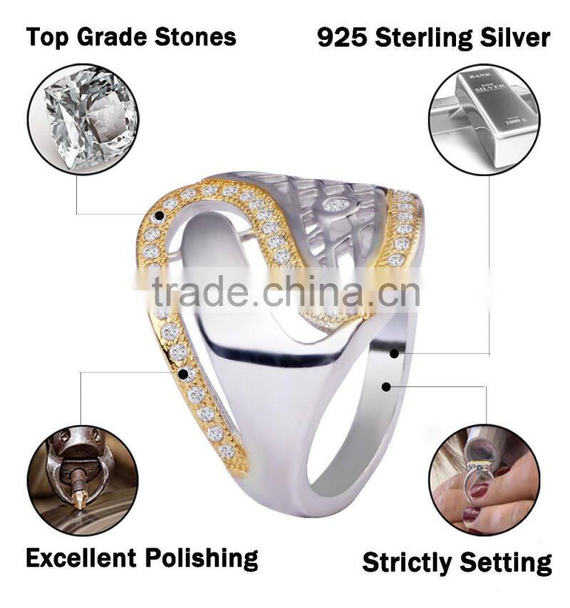 925 sterling silver net shaped letter s ring with gold plated for women