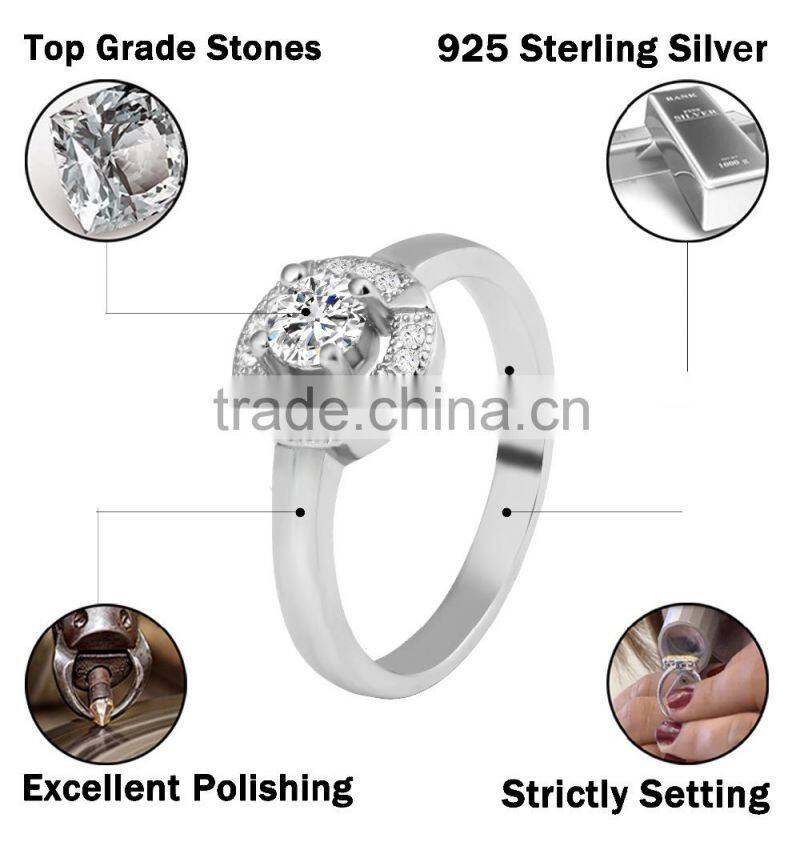 Classical 925 sterling silver prong setting women ring with rhodium plated