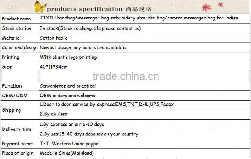 JIXIU handbag&messenger bag embroidery shoulder bag/camera messenger bag for ladies