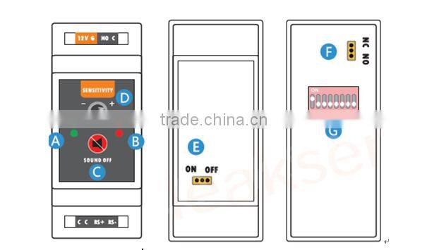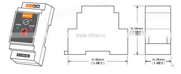 The installation of field wiring canbe easily finished through the pull out plug terminal block in module. The output alarm designed to eliminate leakage automatic reset after water leakage eliminate, the module hasbeeper mute button and detection sensitivity adjustment function. The detection module with small volume is convenient to guide rail or to wall space hang installation.