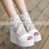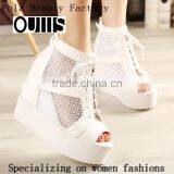 Sexy Mesh Lace up Sandals Platform Wedge Ankle Strap Sandals Black and White Lace up New Style High Heel Wedge Sandals PM3739