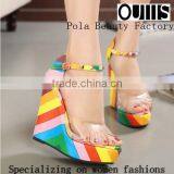 Beautiful Rainbow Color 13.5cm Wedge Sandals Sexy Peep Toe Ankle Strap High Heel Sandals New Fashion Party Shoes PZ3835