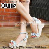 2015 Beautiful Flower Design Wedge Sandals High Quality Low Price Wedge Heel Sandals PQ3813