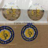 1. Description : Warranty sticker void if tampered is with pre-designed hidden message (such as VOID/OPEN or customized compang log/text )which can be shown immediatedly when the lable is peeled off the application surface .