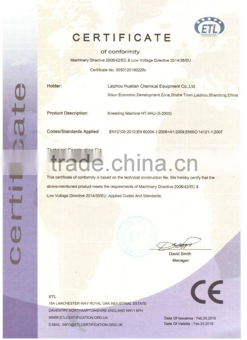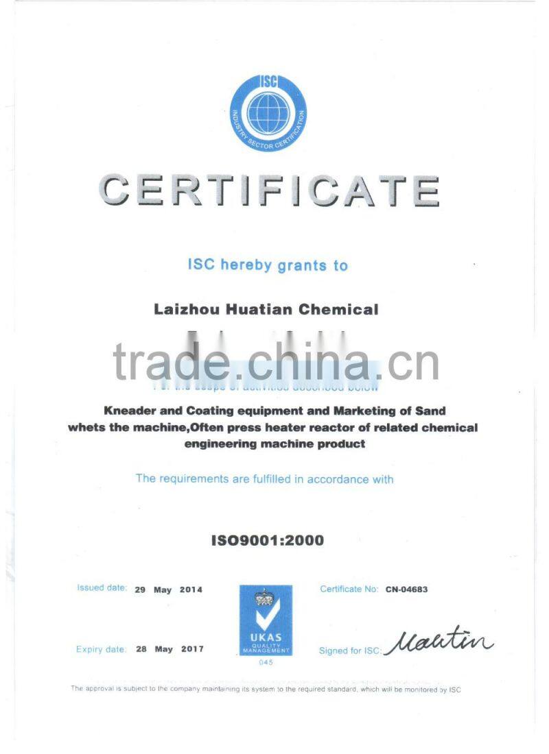 1、Laizhou Huatian Chemical Equipment Co.,Ltd. specializes in the research and development,design,manufacture,marketing and service of fluid and semifluid equipment. The main equipment covers kneaders,intelligent integration of complete sets of equipment for production of coating,emulsion paint and stone-like coating,reaction kettles,mixing machines,emulsifying and grinding equipment etc.,which are widely used in industries of petroleum,chemicals,plastics,foodstuff,pharmaceutical,paper making,leather chemical and many other such industries. We can also provide users with non-standard production line designing scheme and whole factory output turn-key project according to actual technological process and production technology. Our equipment has excellent performance and superior quality with independent intellectual property rights and with a dozen state owned patents applied for.