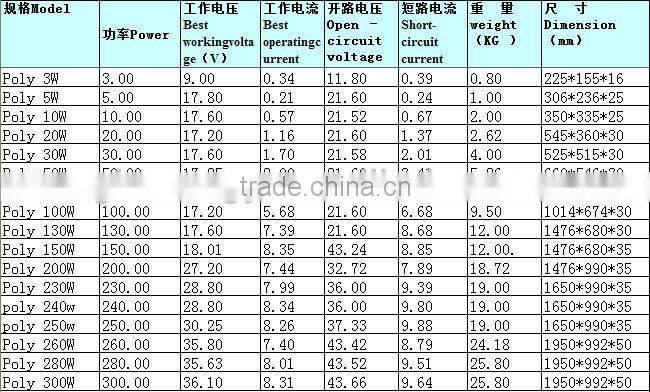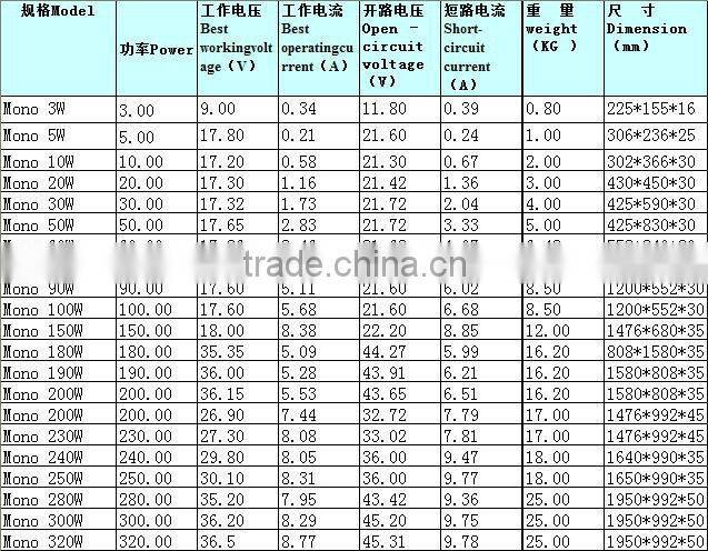 1. High cell efficiency with quality silicon materials for long term output stability and reliability. 2. Rigorous quality control to meet highest international standards.