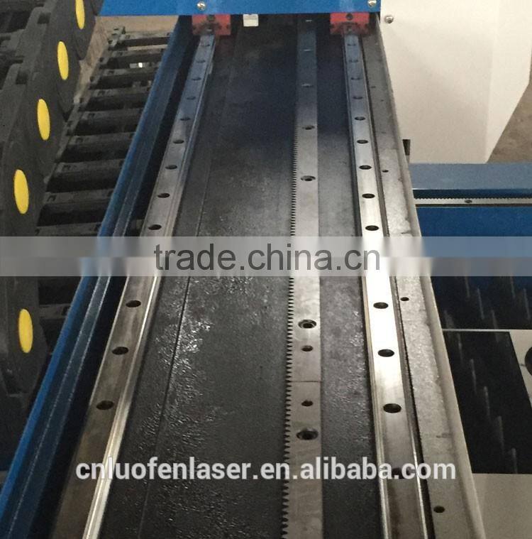 the laser cutting machine for metal is made of laser head could up and down automatically according to the material, it has high sensitivity and good stability, it makes the fixed length cutting head body install optical lenses with different focal lengths so that the focus and the nozzle height can be adjusted flexibly