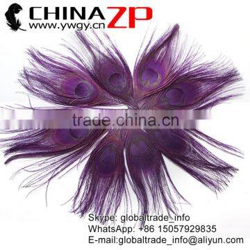 ZPDECOR Factory Bulk Sale Best Selling Dyed Eggplant Trimmed Short Peacock Feathers for DIY