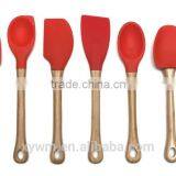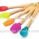 Best Colorful Silicone Kitchen Tool Utensil Bamboo Wooden Spatula Batter Spoon Set
