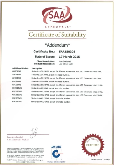 Founded in 1998, and joined the LED business since 2002. With more than 12 years experiences in the LED field, AOK became a professional manufacturer of LED outdoor lighting certified by ISO9001:2008 and ISO14001. Now AOK's products are mainly sold to Europe, North & South American and Australia.
