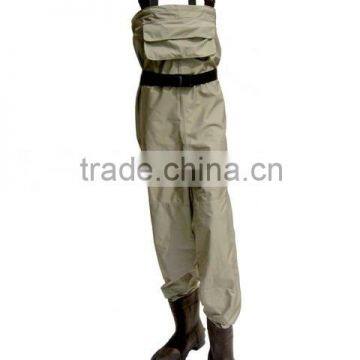 You cannot go wrong with this wader! This wader features elastic suspenders for custom adjustment in the shoulders and large bellows pocket with story flap to prevent water from storing inside the pocket. Attached rubber boots with insulation so that your feet will not feel cold when standing in water for a long period of time. Black webbing belt included.