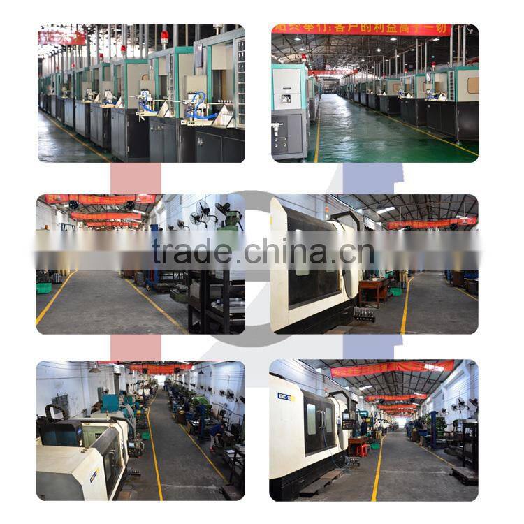 We have two work shops to produce the Thermoforming blow molding machine for PET jar. One is to process the metallic components. We have CNC, drilling, grinding machines etc.. We can be sure about the perfect matching between different parts: