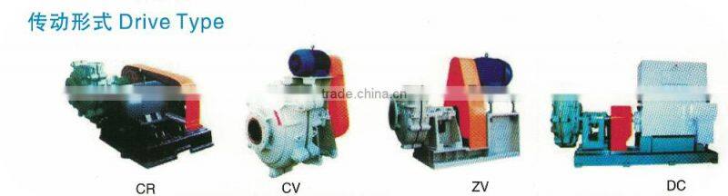 The series slurry pump may adopt means of transmission including direct connection DC,belt drive(CR,CL,CV,ZV), hydraulic and frequency control etc..