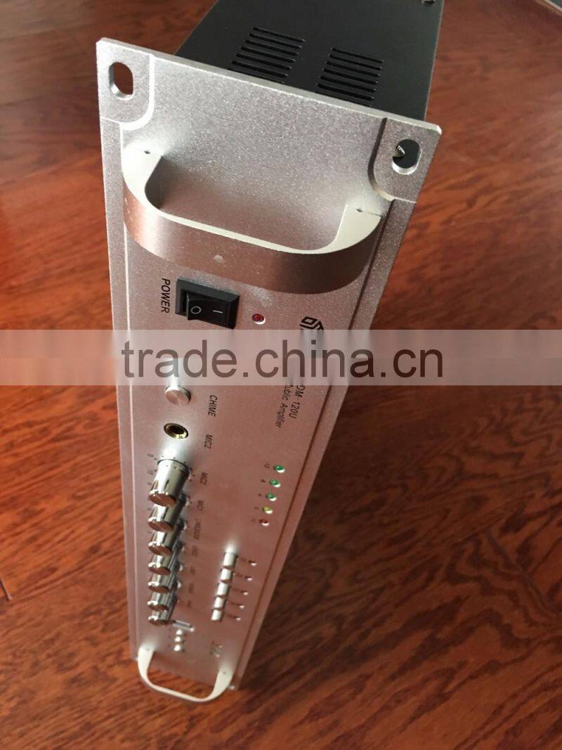 Public Address System PA System PA Amplifiers , which is short for Public Address Amplifier, is used to increase the audio signal of audio sources in public address systems. PA Amplifiers It can be used in public places like schools, hospitals, shopping malls, stadiums, etc. PA Amplifiers It works by taking energy from a power supply and modulate the input signal so as to enhance the output signal. PA Amplifiers PA Amplifiers are usually with high voltage ranging from 70v to 250v because high voltage can reduce signal loss in long-distance transmission.