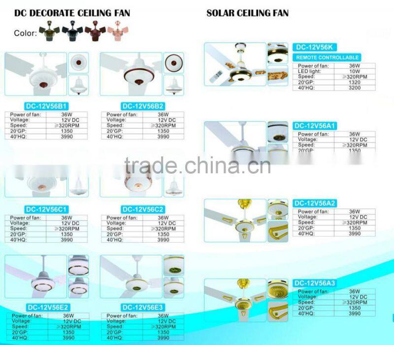 low price 56inch 12v dc battery powered solar ceiling fan